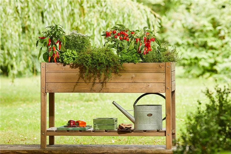 Mit dem praktischen Hochbeet aus Kiefernholz und Edelstahl verlängern Sie nicht nur Ihre Gemüsegartensaison. Auch in der Gartengestaltung kommen Hochbeete immer mehr zum Einsatz