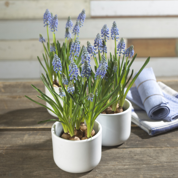 Sucht euch Frühlingsboten wie Narzissen (Narcissus), Traubenhyazinthen (Muscari) oder Hyazinthen (Hyacinthus) aus, am besten noch nicht in voller Blüte. Auch frühblühende Tulpen (Tulipa), Krokusse (Crocus) und die Schwertlilien (Iris) gedeihen in einer Vase prächtig. Um kleine Krokuszwiebeln anzutreiben, braucht ihr lediglich eine Schale mit Kieselsteinen und etwas Wasser. Setzt die Zwiebeln darauf und schaut diesen beim Wachsen zu.