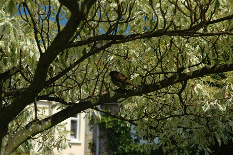Eichhörnchen und Vögel im Garten
